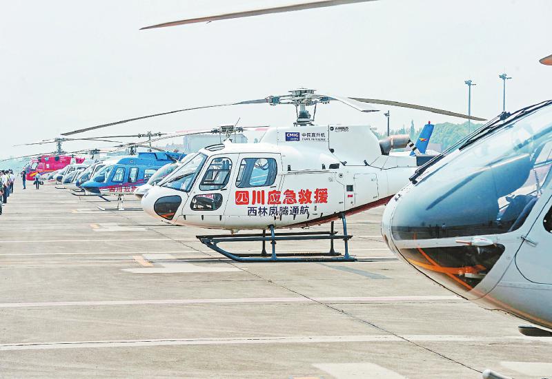 H125直升机、R44“雷鸟”Ⅱ型直升机、贝尔206L4直升机……一架架外形各异的通用航空企业直升机先后完成“灾区”上空20米悬停,并成功空投救灾物资。